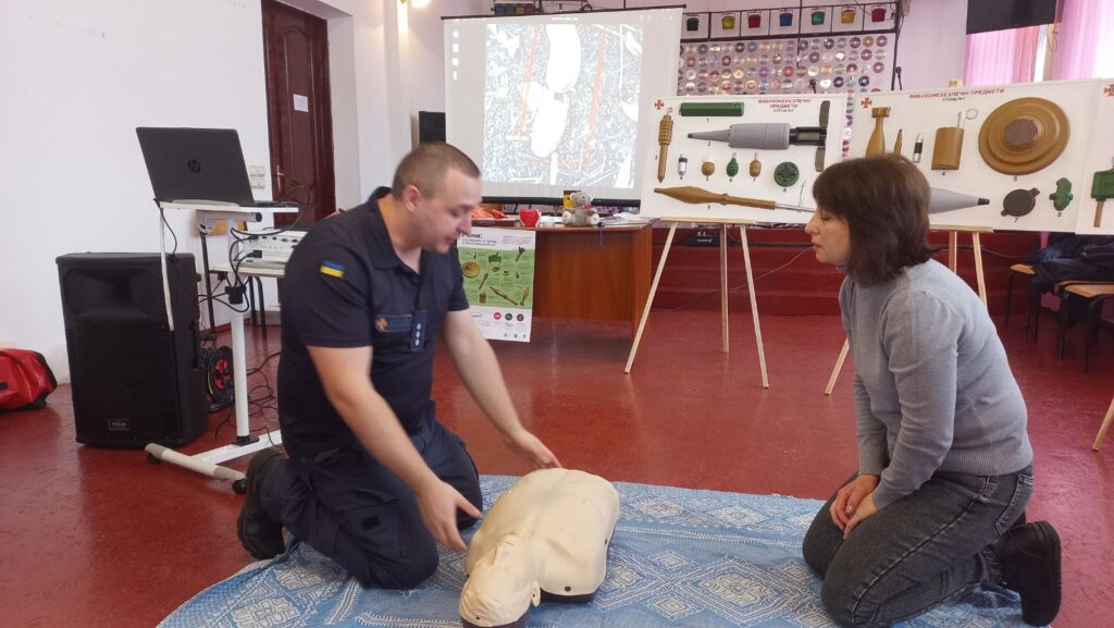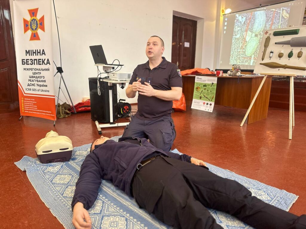 Присутні на заході дізналися про найпоширеніші види мін, про пастки, у які ховають вибухові пристрої, удосконалювали свої знання щодо механізму надання домедичної допомоги.