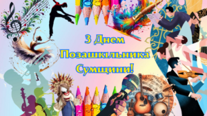 Щиро вітаємо працівників, вихованців, батьків та всіх причетних до позашкільної освіти з Днем позашкільника Сумщини! Бажаємо мирного неба, творчих злетів, впевненості в завтрашньому дні! Нехай кожен день повниться новою радістю та перемогами, хай здійснюються плани в ім’я щасливого майбутнього дітей! Дякуємо збройним силам України за можливість вчитися і творити!